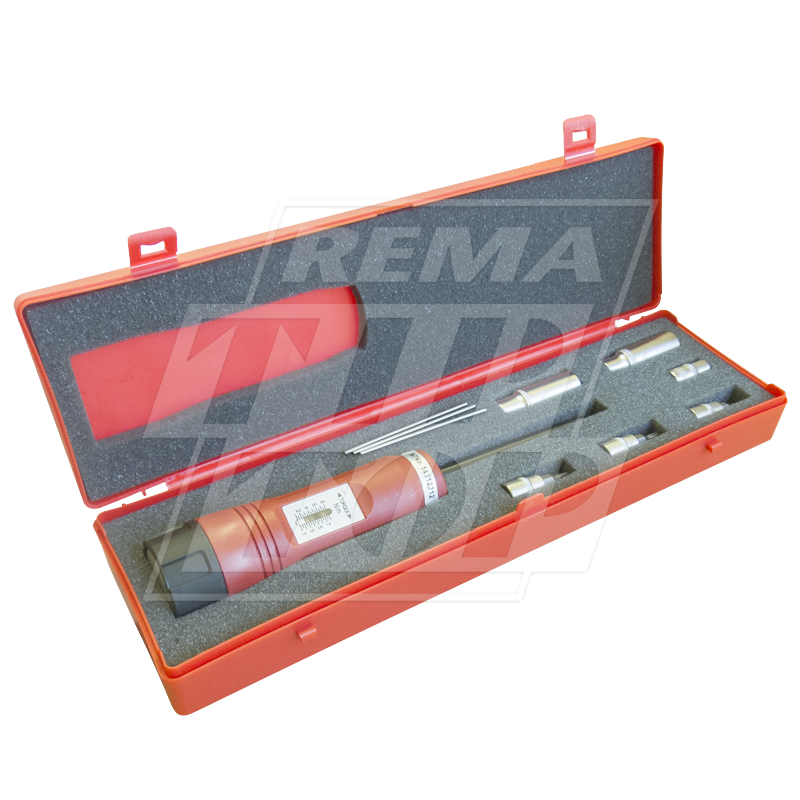 This calibrated torque tool is used for the removal and fitment of TPMS sensors and service kits, which includes:
