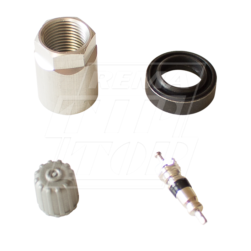 Service kit, including: 1 nut, 1 rubber grommet, 1 plastic washer, 1 valve cap and 1 valve core.