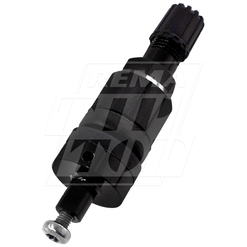 A box of 10 black clamp-in valves, with each including 1 valve stem, 1 screw and 1 valve cap.